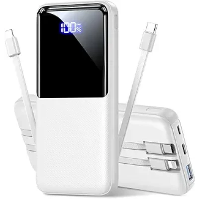 charmast Portable Charger with Built in Cables, Power Bank with Cords Wires,